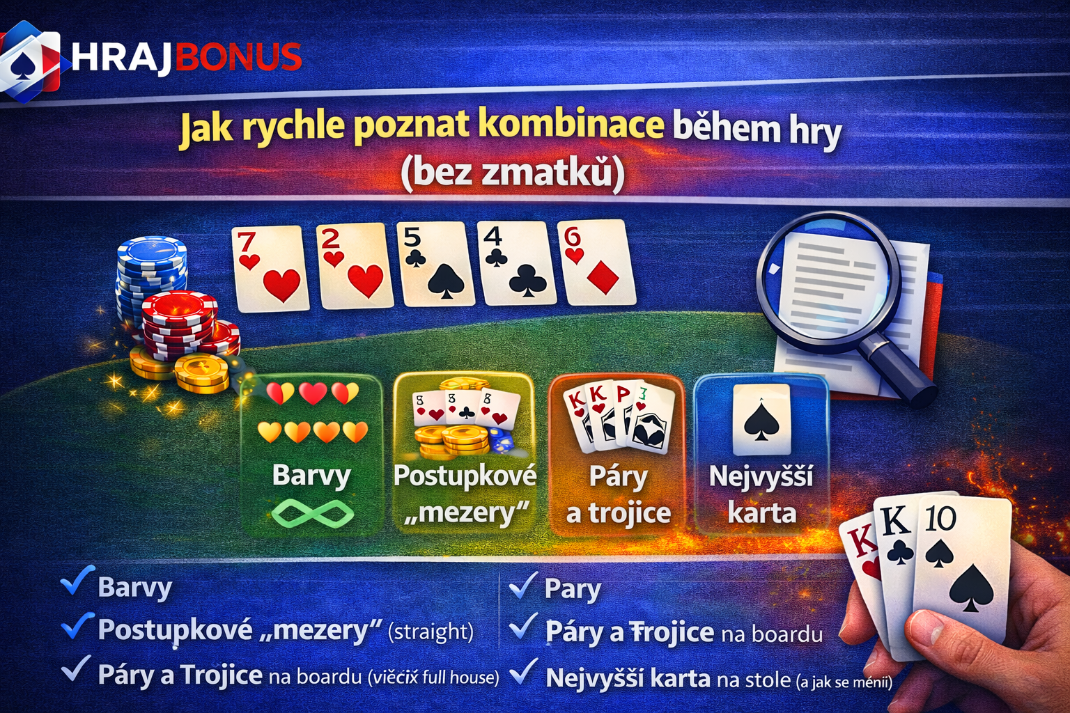 Zapamatovat si pořadí je rychlé, ale těžší je rozpoznávat kombinace automaticky, když běží čas a vy zároveň řešíte sizing sázky, pozici a styl soupeřova blafování. Funguje krátký, opakovaný trénink. Ideálně po minutách, ne až po hodinách.